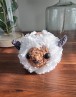 A best seller. Baby bison is crocheted with super soft polyester faux fur. Original pattern. Approx. 4" long.